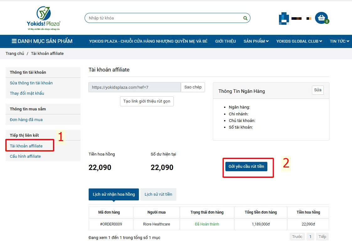Hướng dẫn rút tiền hoa hồng