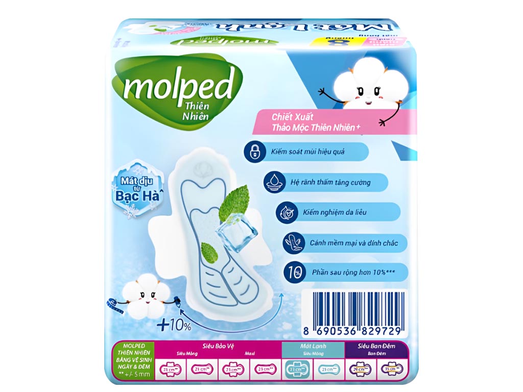 Molped BVS Thiên nhiên Mát Lạnh (Băng Ngày) Siêu Mỏng là một sản phẩm băng vệ sinh thiết kế đặc biệt với công nghệ mát lạnh giúp mang lại cảm giác dễ chịu và thông thoáng cho người dùng trong thời kỳ kinh nguyệt.