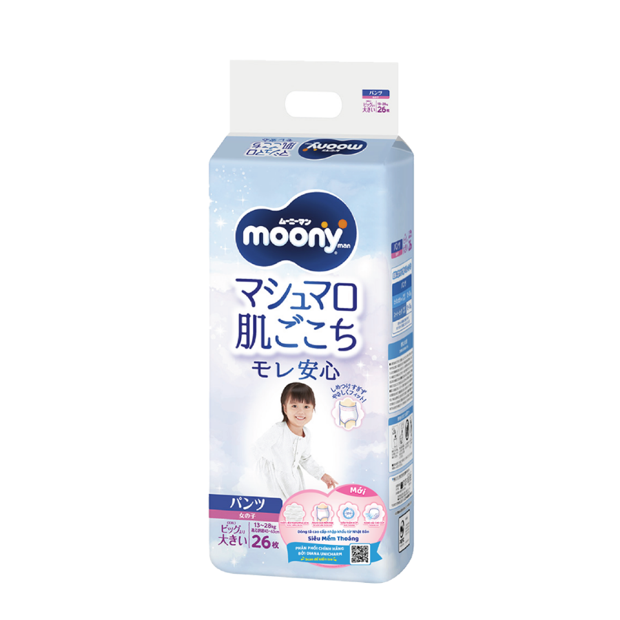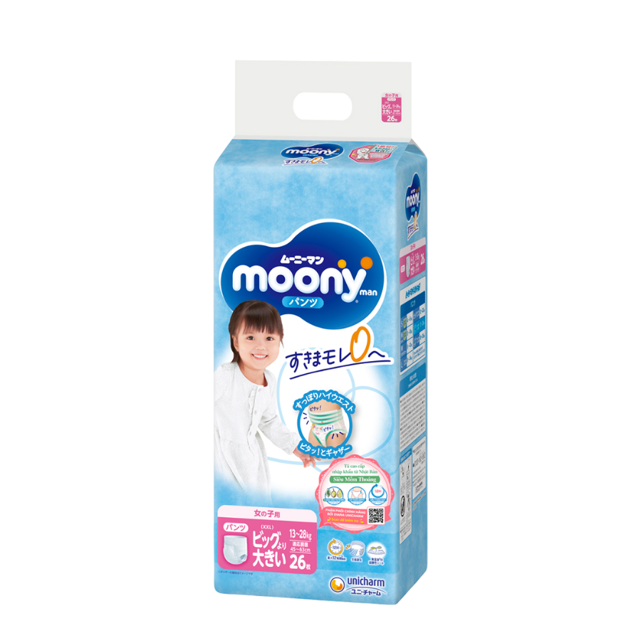 Bỉm tã quần Moony bé gái size XXL 26 miếng