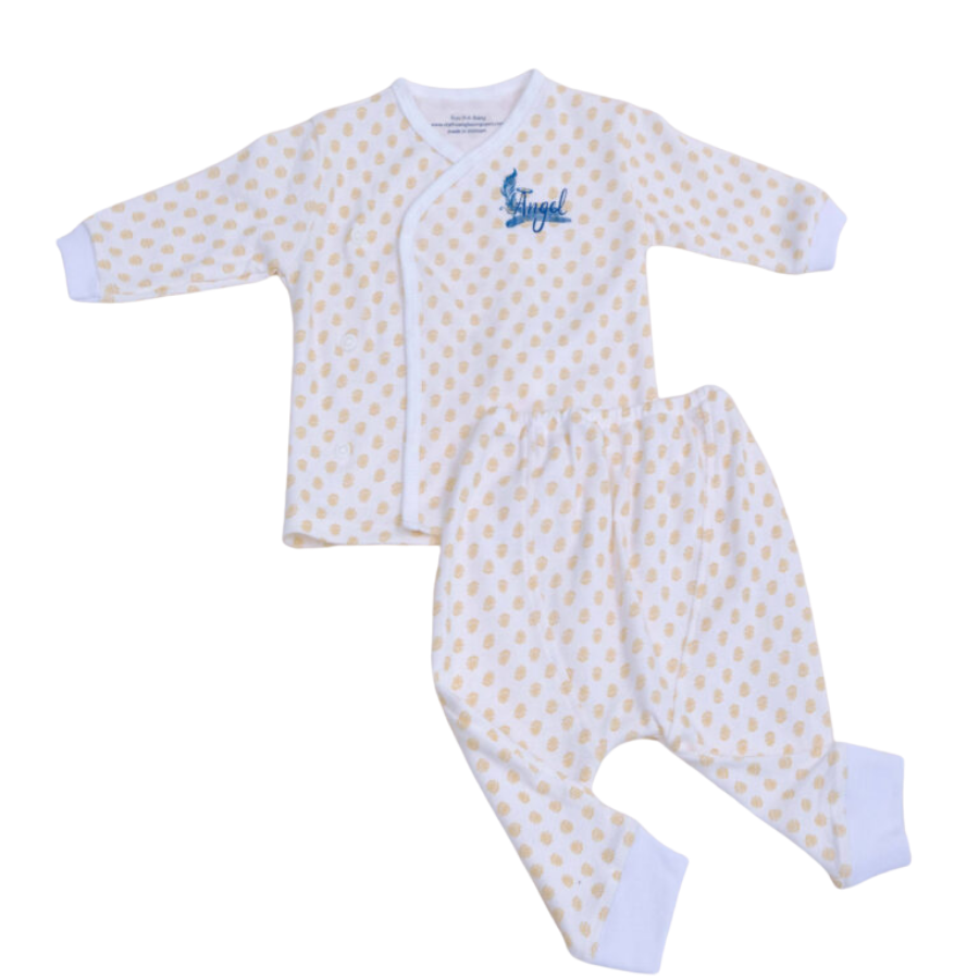 Bộ dài nút cài lệch hoa vàng cho bé với chất liệu mềm mại, an toàn cho làn da nhạy cảm. Thiết kế dễ thương, thoải mái, giá rẻ, giao hàng nhanh chóng - Mua ngay tại yokidsplaza.com.