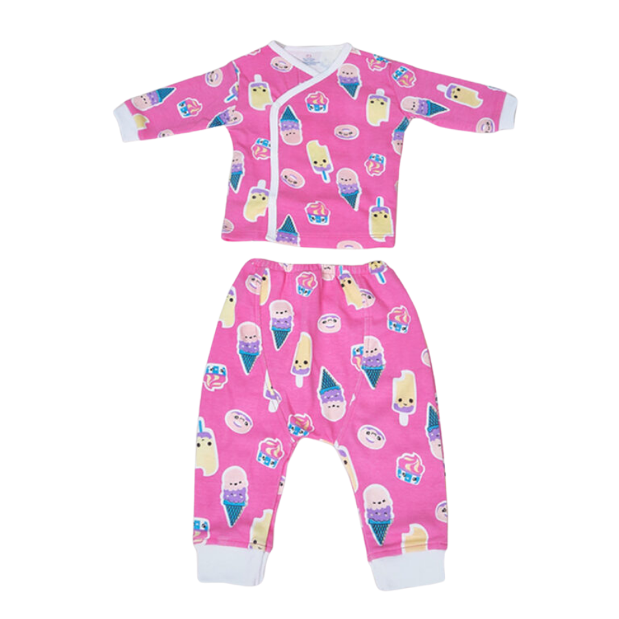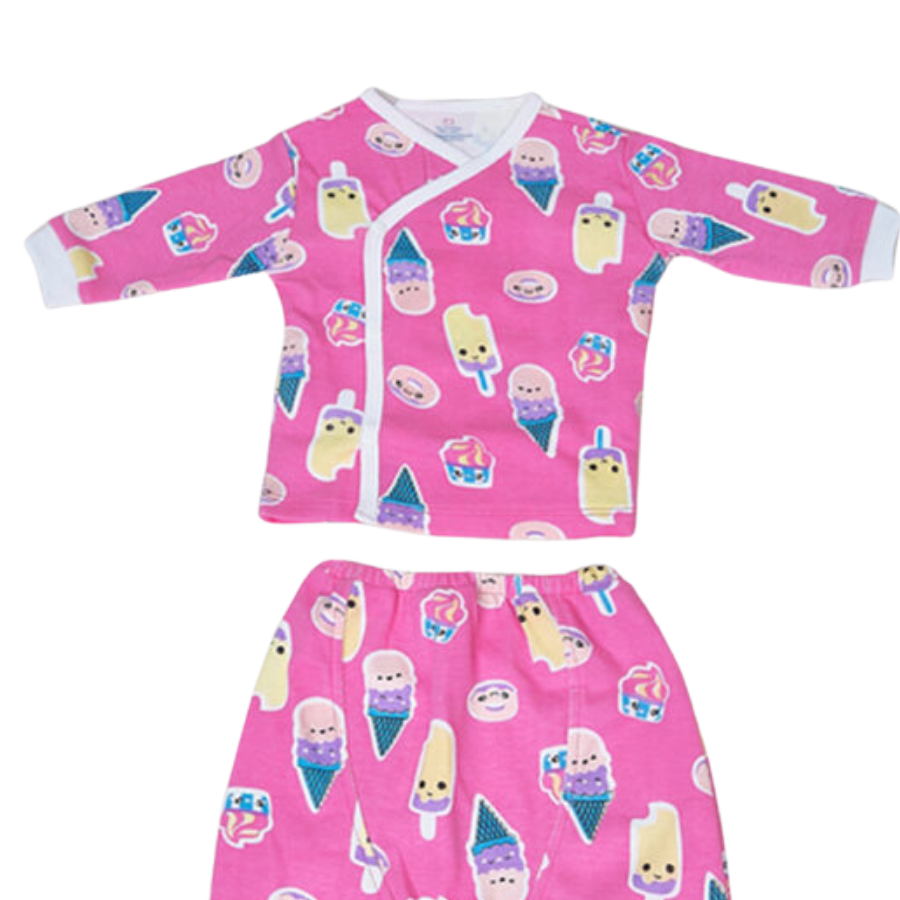 Bộ dài nút cài lệch hồng hình kem cho bé với chất liệu mềm mại, an toàn cho làn da nhạy cảm. Thiết kế dễ thương, thoải mái, giá rẻ, giao hàng nhanh chóng - Mua ngay tại yokidsplaza.com.