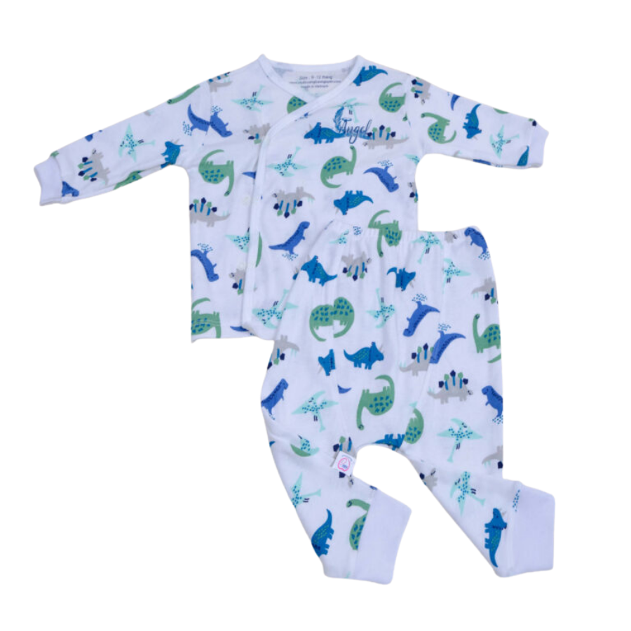 Bộ dài nút cài lệch khủng long cho bé với chất liệu mềm mại, an toàn cho làn da nhạy cảm. Thiết kế dễ thương, thoải mái, giá rẻ, giao hàng nhanh chóng - Mua ngay tại yokidsplaza.com.