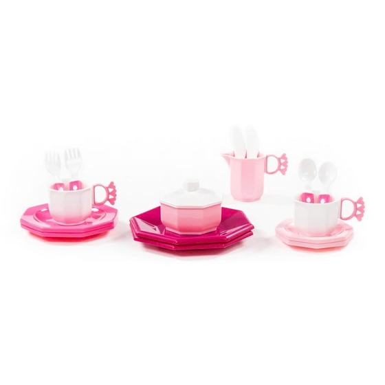 Bộ sản phẩm bao gồm : hai bộ tách kèm muỗng, hai bộ đĩa ăn kết hợp cùng dao và nĩa, một bình nước và một hộp đựng mứt hoa quả,… được đóng gói bằng túi lưới tiện dụng.