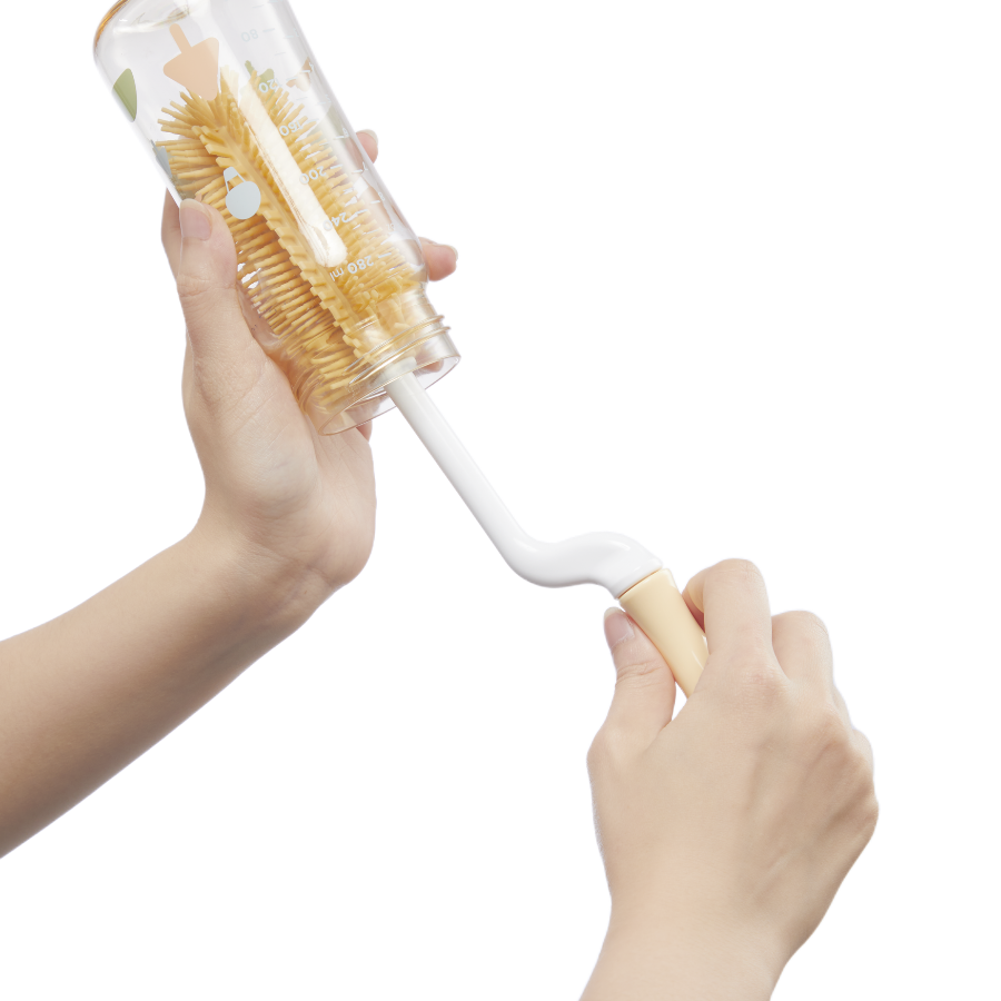 Đầu cọ kết cấu khác nhau, dễ dàng gạt bỏ vết bẩn khó bên trong bình sữa.