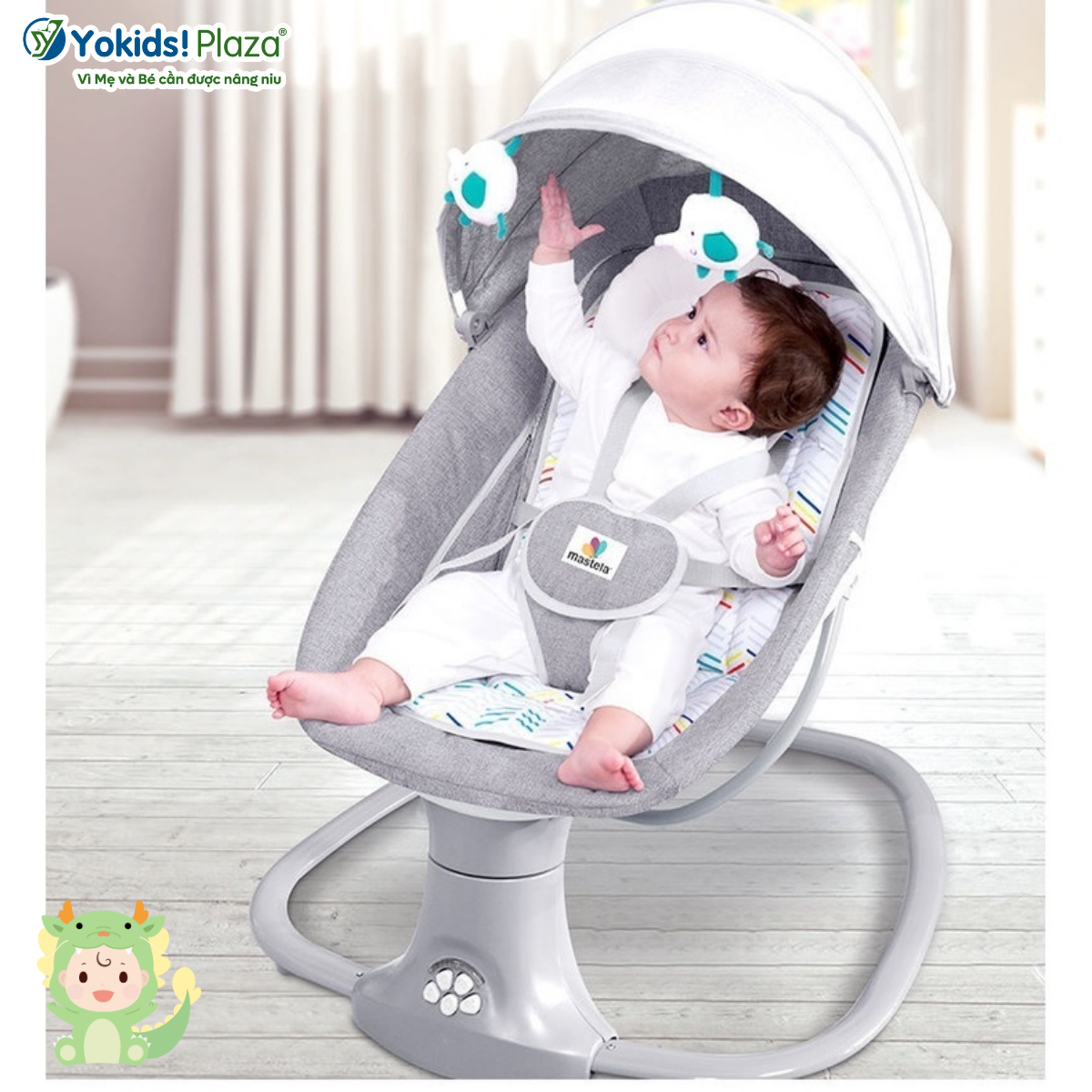 – Nôi điện tự động cho bé Thiết kế thông minh, giúp bố mẹ tiết kiệm thời gian ẵm bồng.