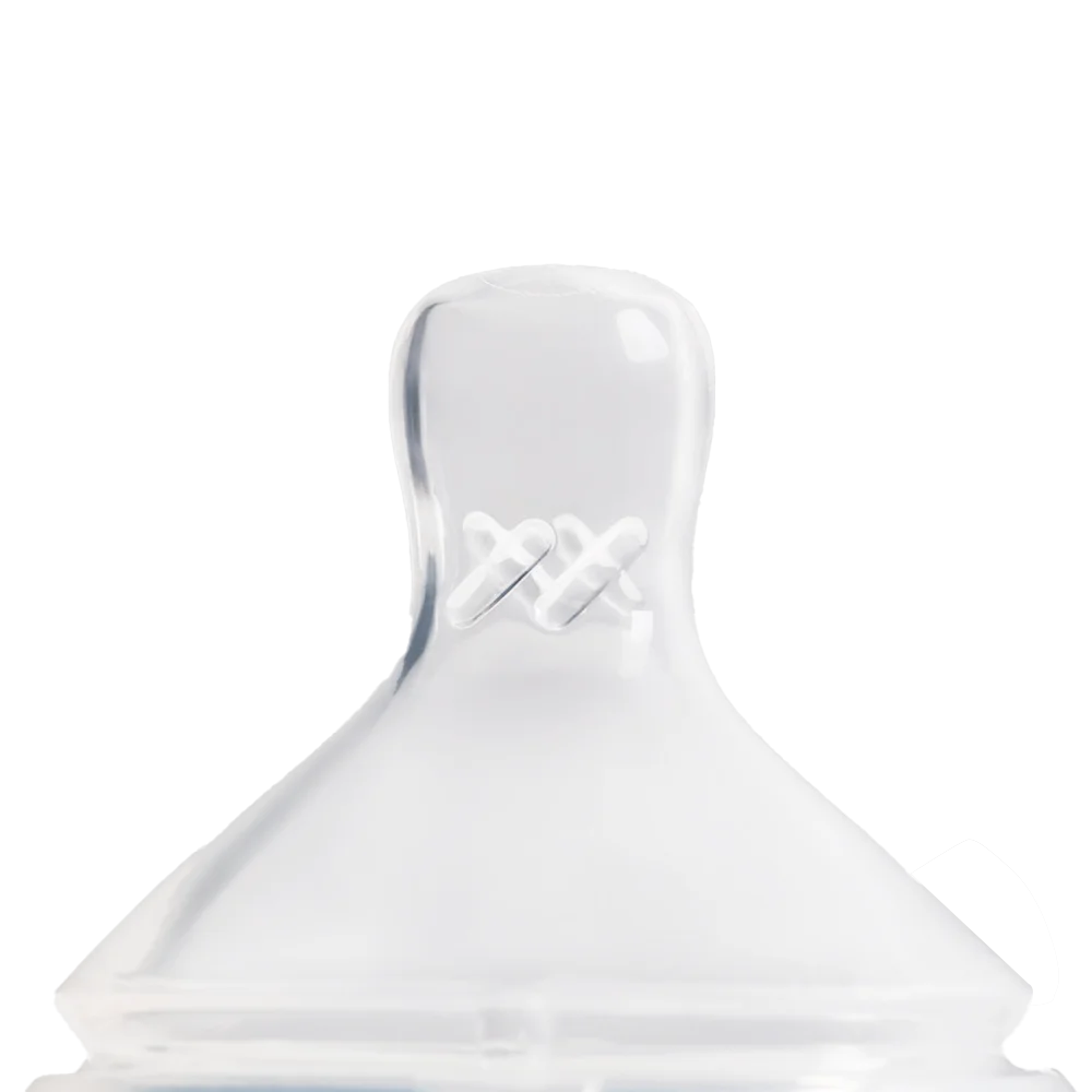 Núm ti được làm từ silicone cao cấp, mềm mại, không chứa BPA, an toàn cho sức khỏe của bé và có khả năng chịu nhiệt trong khoảng từ -20°C đến 100°C. Thiết kế hình elip mô phỏng ti mẹ giúp bé ngậm đúng khớp, bú tự nhiên và hạn chế tình trạng sặc sữa trong quá trình sử dụng.