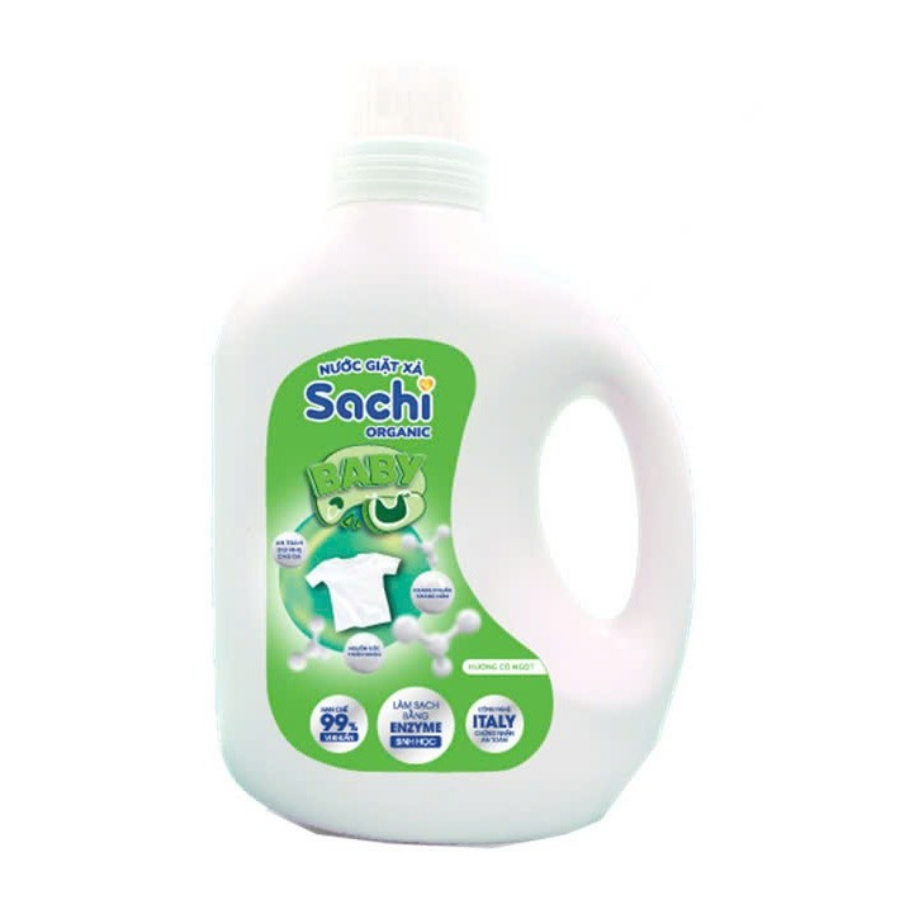Nước giặt xả Sachi Organic hương cỏ ngọt – chiết xuất từ thiên nhiên, làm sạch hiệu quả, lưu hương nhẹ nhàng, không gây kích ứng da, phù hợp cho trẻ nhỏ và người có làn da nhạy cảm.