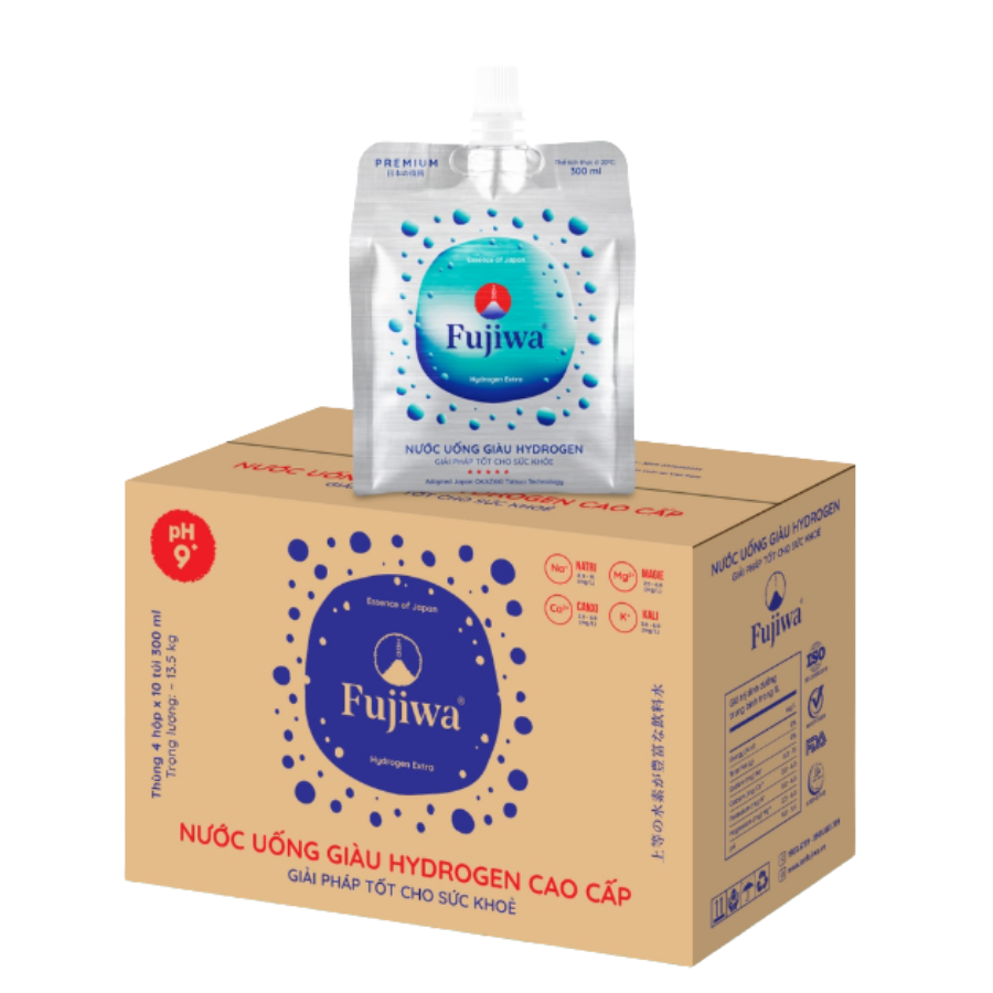 Nước Uống Giàu Hydrogen Cao Cấp Fujiwa Dạng Túi Bạc sản xuất bằng công nghệ tiên tiến Nhật Bản đến từ thương hiệu nước Fujiwa.