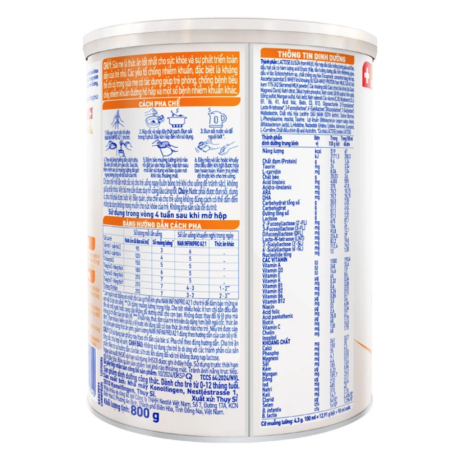 Sữa bột NAN InfiniPro A2 6HMO số 1 (đạm quý A2) 800g (0 - 12 tháng)