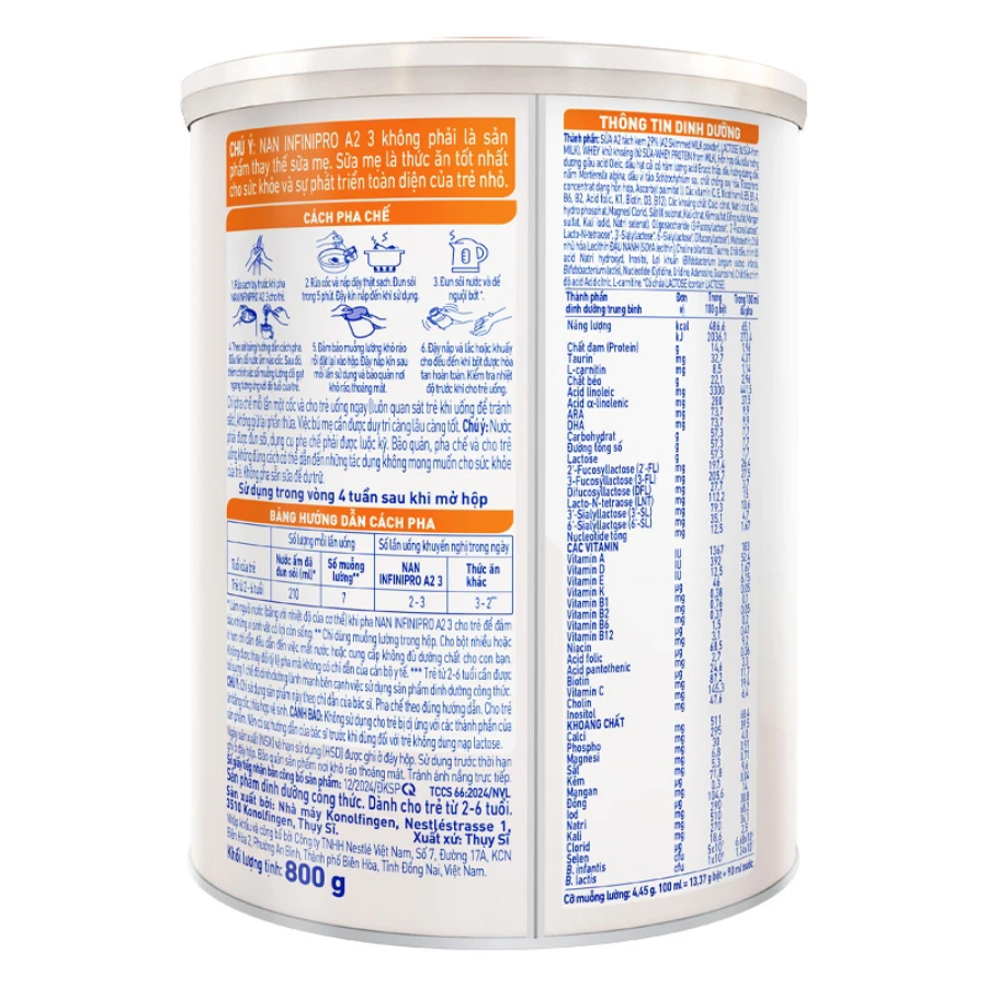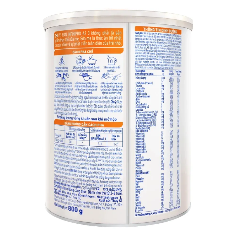 Sữa bột NAN Infinipro A2 6HMO số 3 800g là dòng sản phẩm dinh dưỡng được thiết kế đặc biệt dành cho trẻ từ 2 đến 6 tuổi, giúp tăng cường sức khỏe đường ruột và hỗ trợ hệ miễn dịch thông qua sự kết hợp giữa đạm quý A2 và phức hợp 6 loại HMO (Human Milk Oligosaccharides).