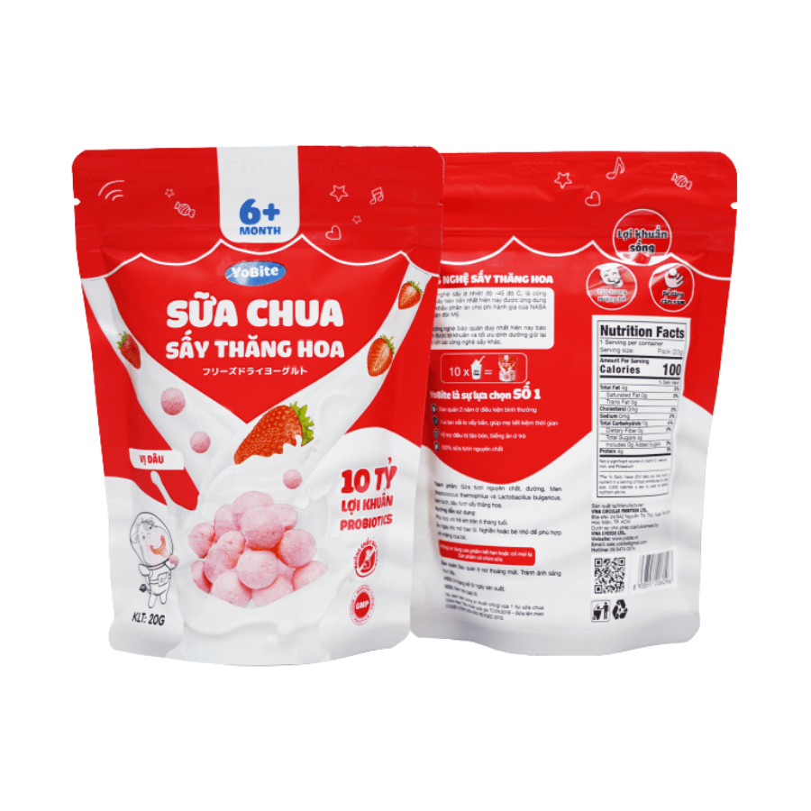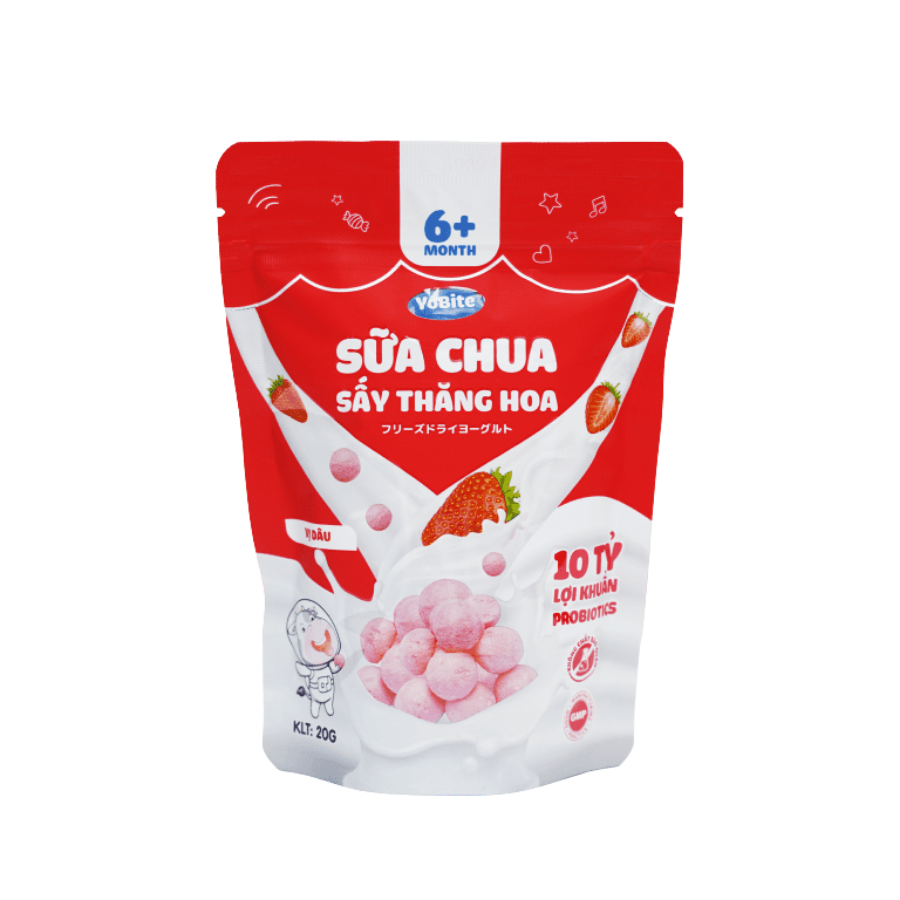 Cung cấp dinh dưỡng: Sữa chua sấy thăng hoa cung cấp probiotics, protein, canxi, vitamin và khoáng chất quan trọng cho sự phát triển của trẻ.