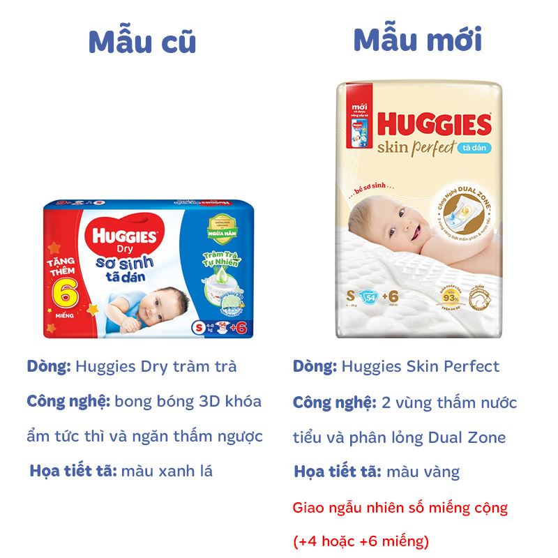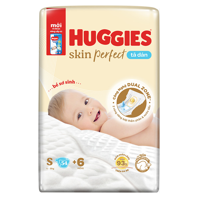 Tã dán Huggies Skin Perfect size S 54 + 6 miếng (4 - 8 kg) - Giao bao bì +4/+6 ngẫu nhiên
