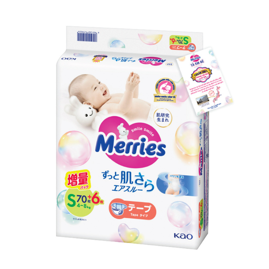 Tã dán Merries nội địa (S, 4-8kg, 70 + 6 miếng)