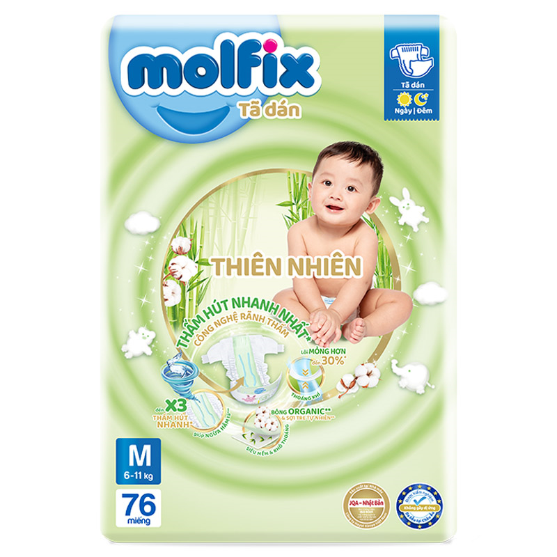 Tã dán Molfix thiên nhiên size M 76 miếng (6 - 11 kg)