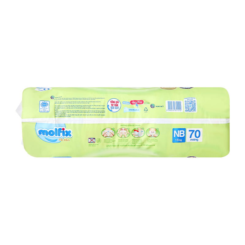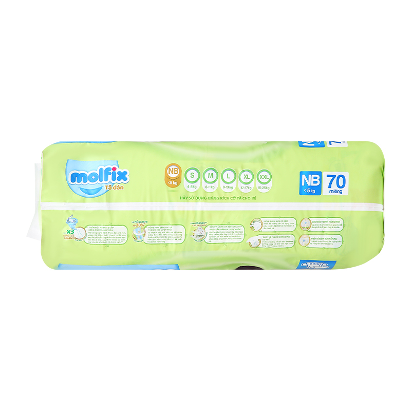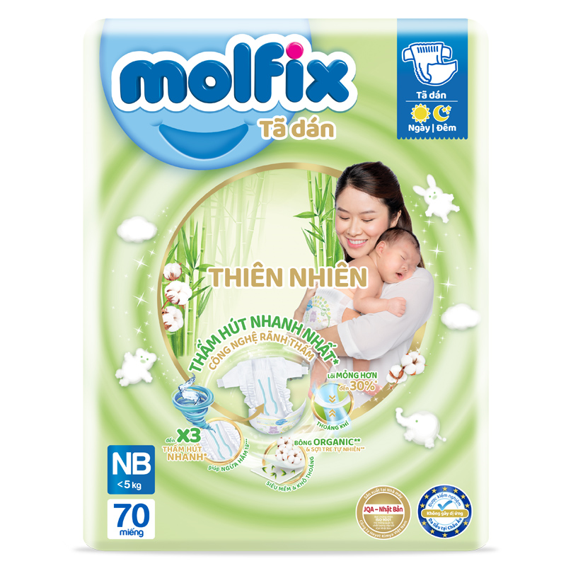 Tã dán Molfix thiên nhiên size NB 70 (Dưới 5 kg) giúp bảo vệ da bé, thấm hút vượt trội, kháng khuẩn hiệu quả, duy trì độ pH ổn định. Mua ngay tại Yokidsplaza.com