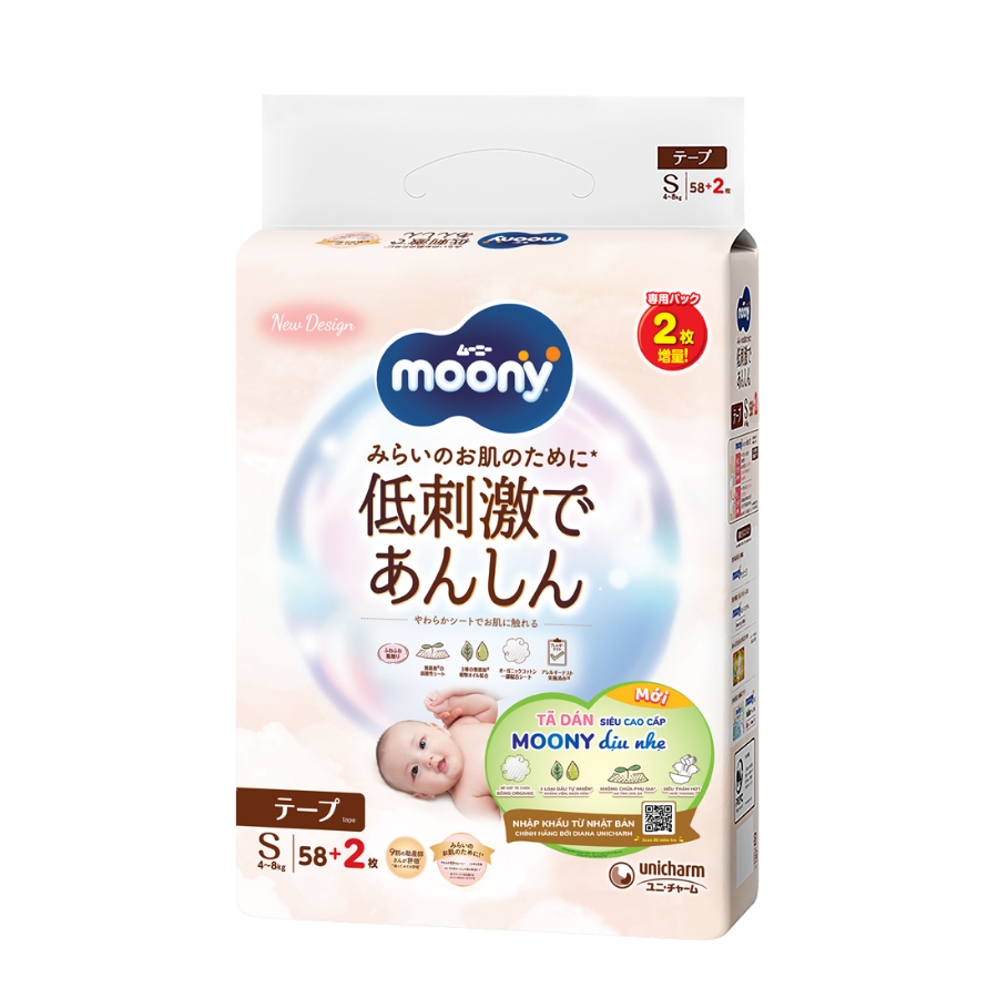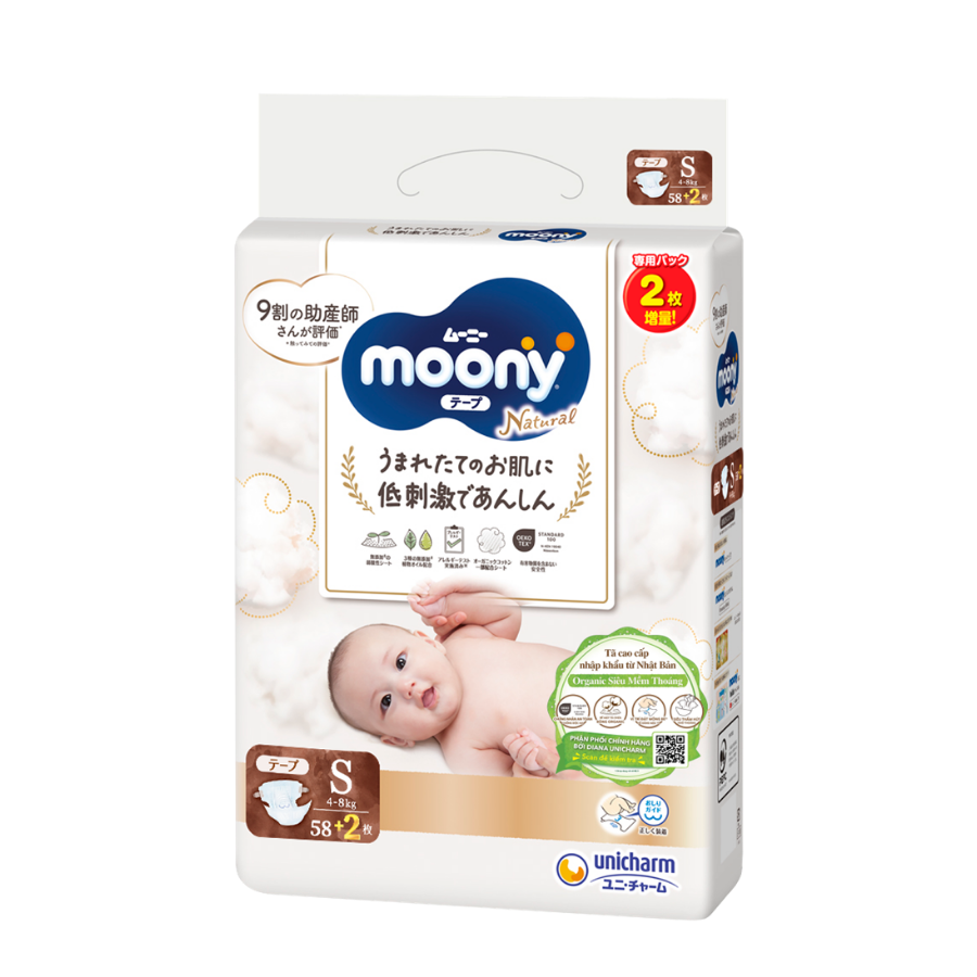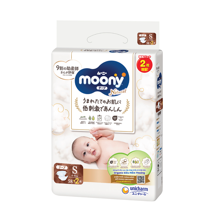Tã dán Moony Natural / Moony Dịu nhẹ (S, 58 miếng + 2 miếng) |