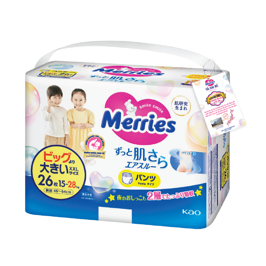 Tã quần Merries (XXL, 15-28kg, 26 miếng) |