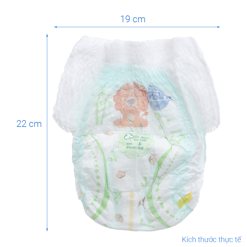 Bề mặt tã quần sử dụng chất liệu bông Organic mềm mại và lớp dẫn thấm hút làm từ sợi tre tự nhiên mang đến cho bé cảm giác dễ chịu, thoải mái khi mặc bỉm.