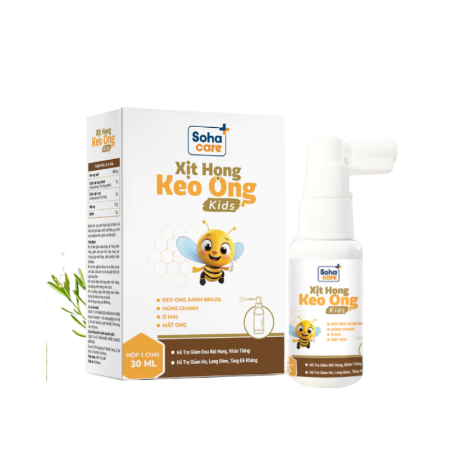 Xịt Keo Ong SOHACARE là giải pháp tự nhiên hỗ trợ giảm ho, viêm họng và các vấn đề đường hô hấp cho trẻ từ 1 tuổi. Với thành phần keo ong xanh từ Brazil kết hợp húng chanh, ô mai và mật ong, sản phẩm giúp làm dịu cổ họng, giảm ho và tăng cường sức đề kháng cho bé.